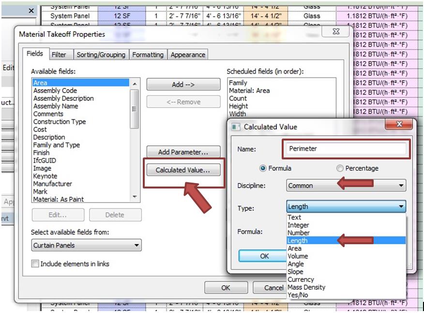 Select “Calculated Value”. Name it “Perimeter”. Set Discipline to “Common”, and Type to